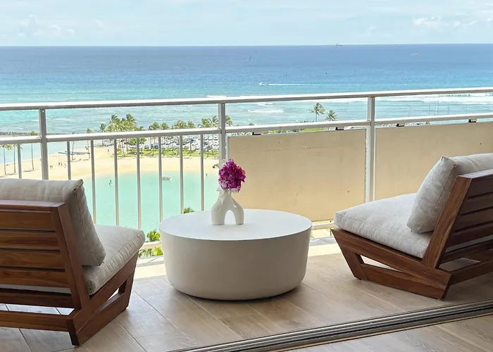海辺のNewly Renovated Oceanview Luxe Stay With Free Parking ホノルルアパートはデューク・カハナモク・ラグーンから歩いてわずか7分で、ハワイ・アメリカ陸軍博物館からたった1.2キロメートルの場所にあります。 プールを提供するホテルは、フォート・デ・ルッシー・ビーチパークほんの数分です。